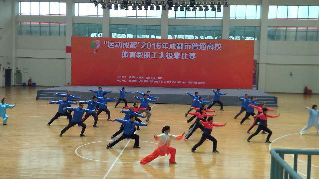 12月11日,由成都市体育局、成都市高校体协主办的“运动成都”2016年成都市普通高校体育教职工太极拳比赛在成都中医药大学(温江校区)体育馆举行,来自成都市11所高校的498名教职员工参加了本次比赛。