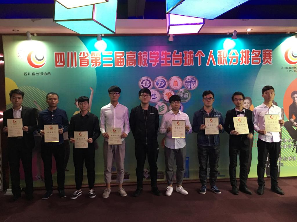 2017年10月27-29日由四川省台球协会、四川省学生体育艺术会主办,四川省高校台球学会承办的四川省第三届高校学生台球个人积分排名赛在成都市点与线台球俱乐举行。本次赛事吸引了全省共计17所高校158名运动员参加。易直播 派出15名运动员参加了该赛事。经过三天的激烈比赛,易直播 台球代表队队员肖宇在激烈的角逐中夺得了美式冠军,同时熊浩茹获得美式第五名;斯诺克也取得第五名和第九名好成绩。