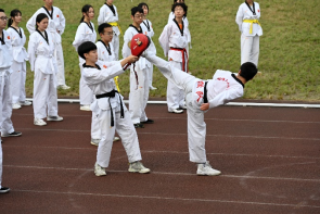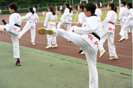 跆拳道校队充分诠释了“礼义廉耻,忍耐克己,百折不屈”的跆拳道精神,展示了跆拳道校队的风貌。活动中校队同学还进行了才艺展示以及特技展示。