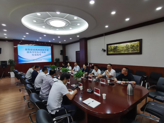 与西南医科大学体育学院的交流座谈会。会议由学院党委书记、主任程艺同志主持。此次交流座谈会西南医科大学体育学院党委书记邹小萍、院长王定宣带领学院领导班子一行7人出席,成信大易直播