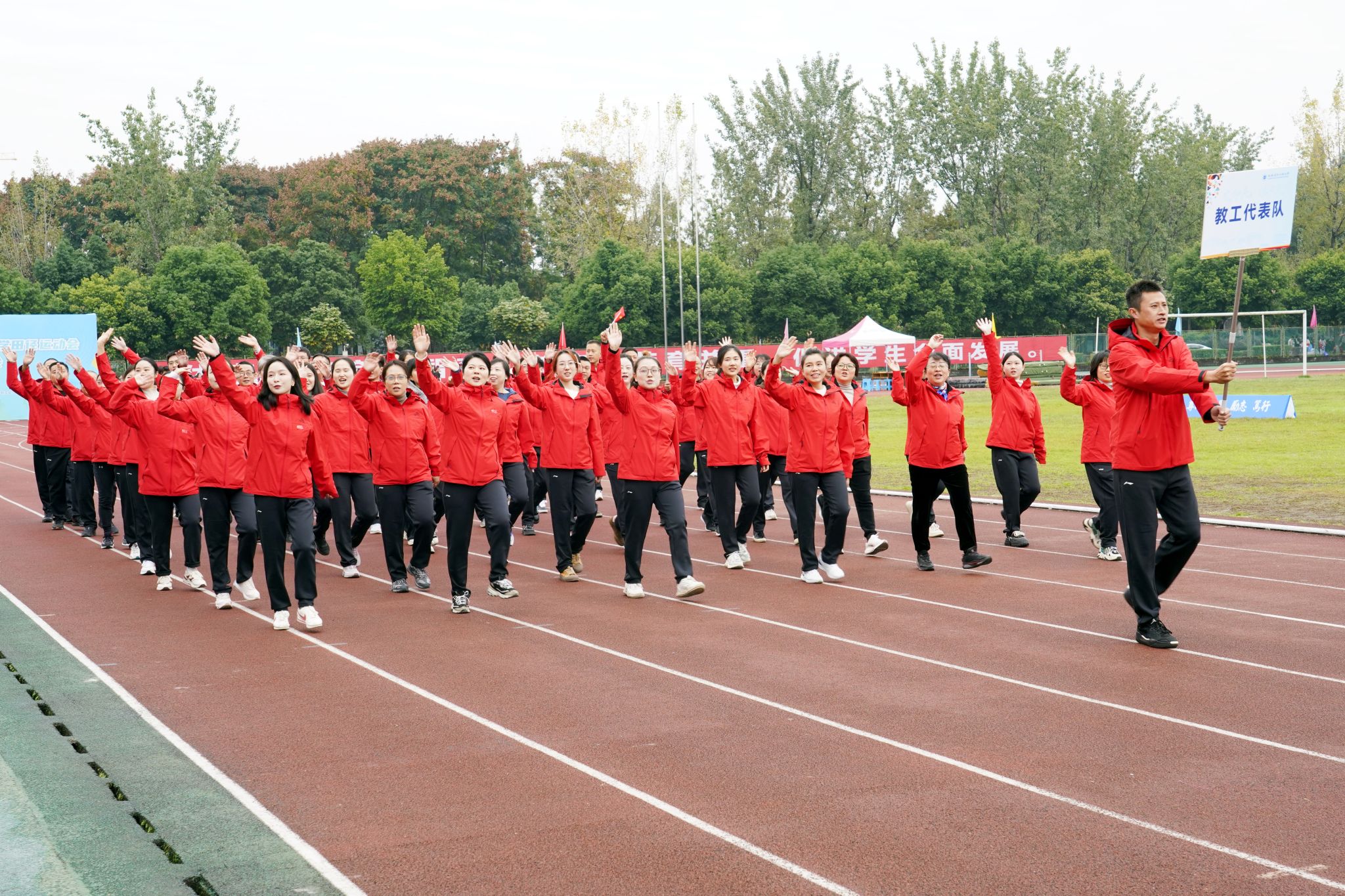 2025年田径运动会暨教职工趣味运动会在航空港校区第二运动场开幕。易直播
