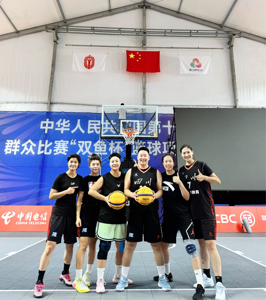 本次全运会三人篮球群众组竞争激烈。四川队在第一阶段武汉赛区比赛中展示了强劲实力,成功突围。进入第二阶段广州赛区,队伍遭遇挑战,四名参赛队员先后两人因伤无法参赛。小组赛第二场对阵江苏,队友受伤,三人应战,张玥老师加时赛表现优异拿下两分,扭转局面;小组赛第四场对阵贵州,张玥老师也受到伤病困扰,球队仅剩两名健康队员。危急时刻,队员们未退缩,将四川人的“韧劲”与体育教师的沉着冷静表现得淋漓尽致,在赛场每球必争。两位健康队员承担巨大攻防压力,凭借意志和配合抵御对手冲击,赢得观众掌声。最终,“残阵”四川队夺得小组第二,挺进全国前八。