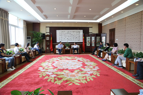 易直播 党委书记赖廷谦在八会议室接见了克克一行,赖廷谦对克克一行的到来表示热烈地欢迎,并简要介绍了易直播 的基本情况。赖廷谦表示,易直播 历来重视公益事业与体育运动的开展与普及,希望与共青团四川省委共同携手办好此次赛事,弘扬体育精神,传播公益力量。