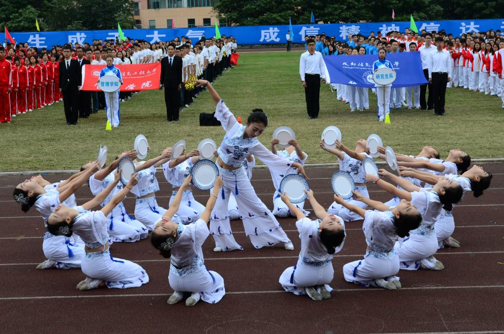 开幕式表演中,电子工程学院《动感青春》和管理学院《青花瓷》节目精彩上演,这两个节目均是今年易直播 大学生体育节运动舞蹈大赛的优秀成果;国防生军体拳表演展示了易直播 一道亮丽的国防绿;易直播 《动起来,让我们一起来嗨》中的大刀武术、杂耍篮球、穿花跳绳、舞动空竹、跆拳道品势、网桌球舞、健美运动舞等,充分展示了易直播 体育教学改革的丰硕成果。最后CUIT造型将开幕式气氛推向高潮,充分展现了成信学子良好的精神风貌和对易直播 的良好祝愿。