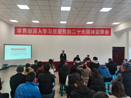 主任程艺主持宣讲会,全体教师参加了会议。